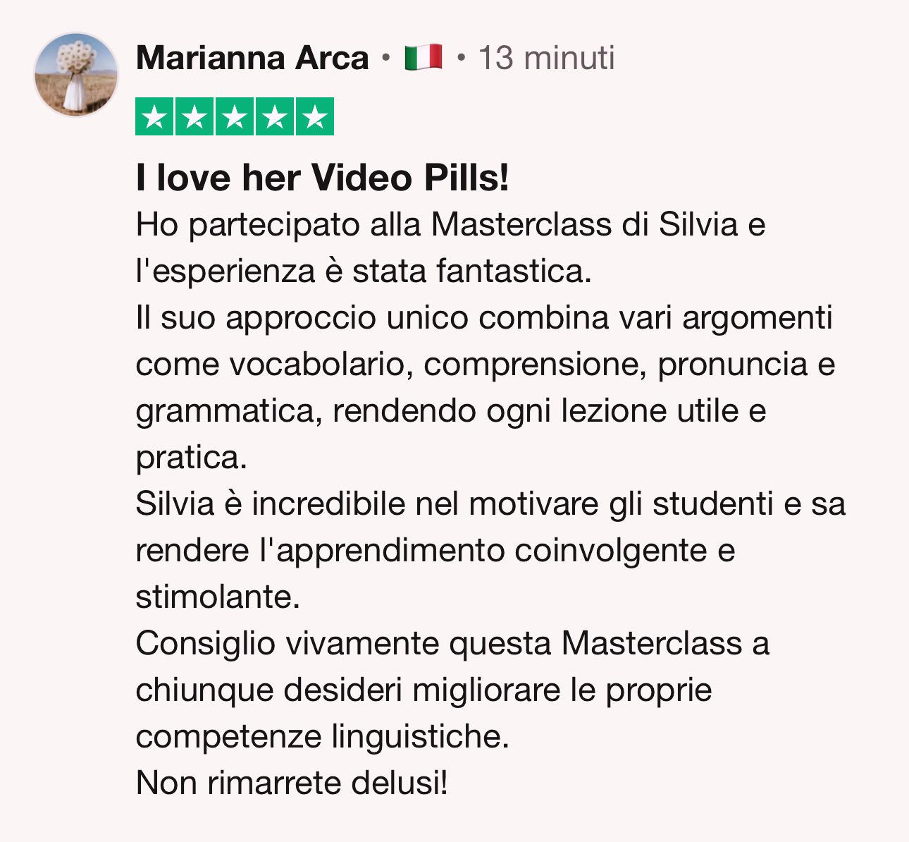 - Vocabulary booster: siamo tutti un po’ pigri e tendiamo ad usare sempre i soliti vocaboli. Tuttavia, se la grammatica è la struttura portante della lingua, il lessico che usiamo è il nostro biglietto da visita internazionale, quello che fa davvero la differenza. Vedremo insieme come interiorizzarlo alla velocità della luce;
