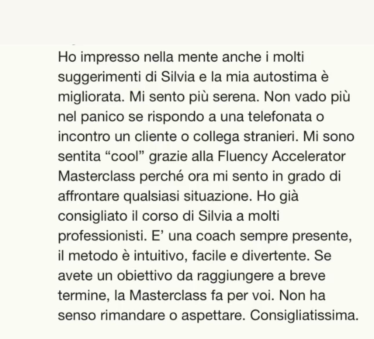 Lavoro da anni con professionisti ambiziosi provenienti dagli ambiti più disparati, ma che da anni desiderano fare il salto di qualità in inglese.